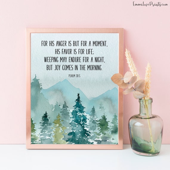 Bible Verse Prints Psalm 30 5 Christian Wall Art His Favor Etsy