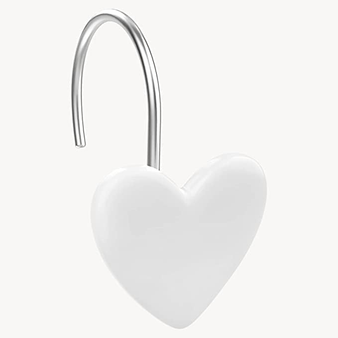 Set Of 12 Heart Shape Anti Rust Resin Decorative Shower Curtain Hooks Stainless Steel Ddurable Love Icon Romantic Decorative Shower Curtain Hooks For Bathroom White Walmart Com